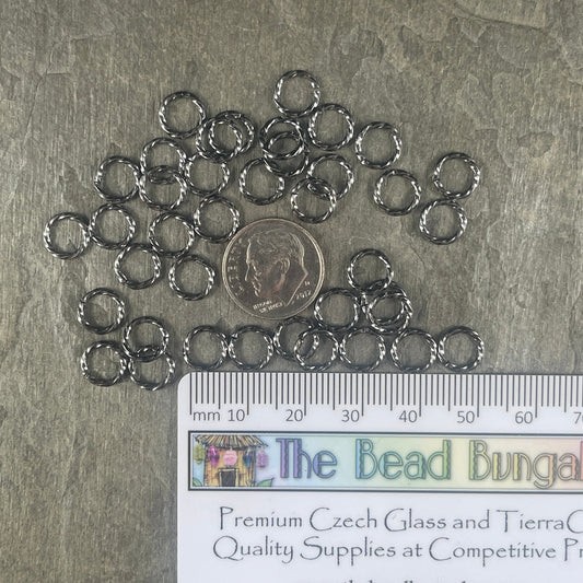 8mm Twisted Jump Rings ~ Gunmetal Black Decorative 16 gauge Open Jumprings (FMG/5036) * Qty. 100