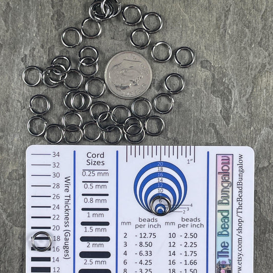 16 Gauge 8mm Gunmetal Jump Rings, Gunmetal Black Plated Brass Open Jump Rings (FMG/5173) * Qty. 50