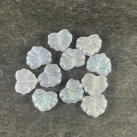 Czech Glass Leaf Beads - 10x13mm Frosty White Maple Leaf with AB Finish (ML45) * Qty. 10