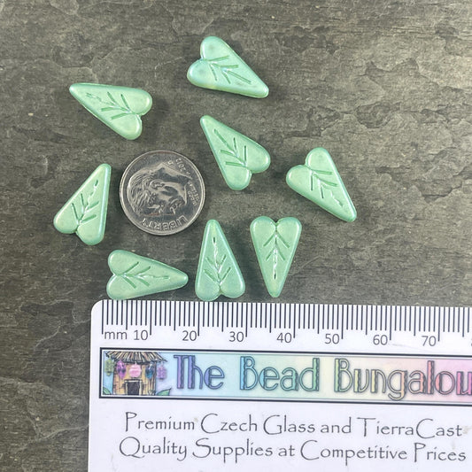 Czech Glass Beads, 16x11mm Elongated Heart Shape Beads, Matte Mint Green with Full AB Finish (PHL14) * Qty. 8