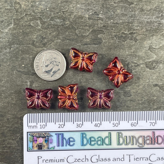 Czech Glass Beads, 15x12mm Double-Sided Butterfly Bead, Fuchsia Butterflies with Copper Wash (Bfly-10) * Qty. 6