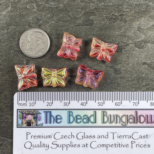 Czech Glass Beads, 15x12mm Double-Sided Butterfly Bead, Tropical Sunset, Orange and Yellow Butterflies (Bfly-1) * Qty. 6