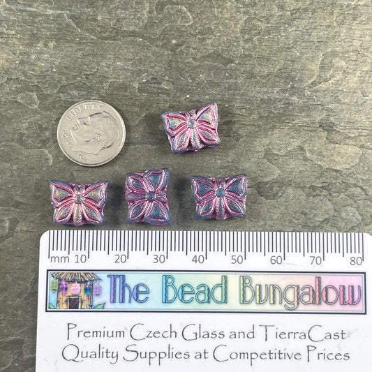 Czech Glass Beads, 15x12mm Double-Sided Butterfly Bead, Matte Royal Blue with Metallic Pink Wash (Bfly-9) * Qty. 6