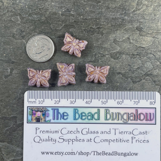 Czech Glass Beads, 15x12mm Double-Sided Butterfly Bead, Alabaster with Lavender Picasso (Bfly-6) * Qty. 6