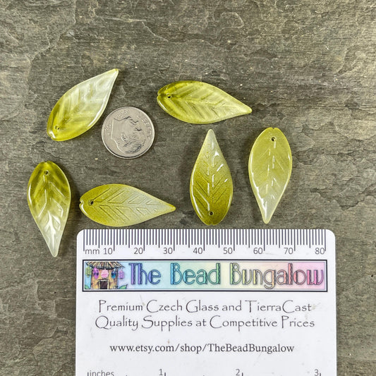 Olive Green Glass Leaf Beads, Top Drilled, 32x14mm Wavy Leaf Bead (OGW-32x14) *