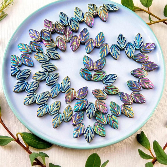 Matte Iris Glass Leaf Beads, Briolette Style Leaf (3222GL) * Qty. 20 beads
