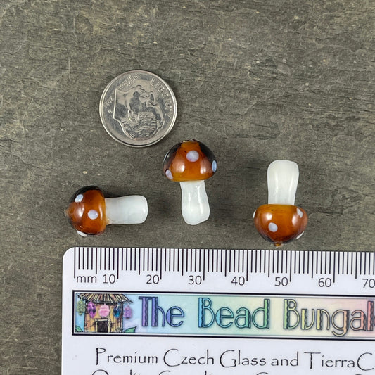 Polkadot Mushroom Caps ~ 20x12mm Glass Mushroom Beads ~ Fairy Garden Mushroom ~ Brown and White Mushroom Bead * Qty. 1