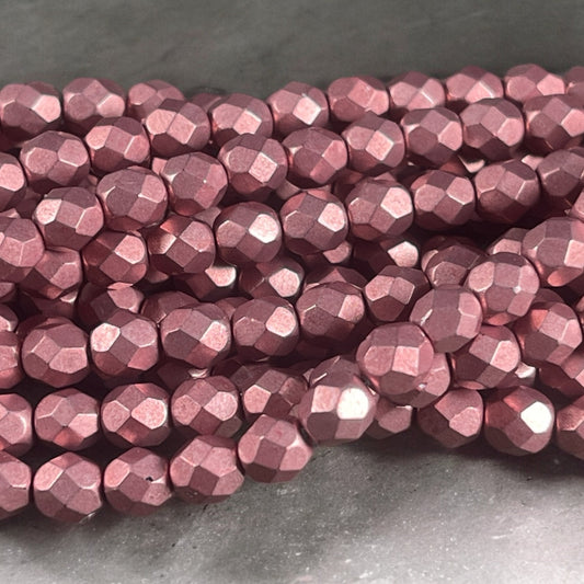 Czech Glass Beads 6mm Pink Metallic Fire Polished Beads 6mm Faceted Round Beads - Light Rose Gold Metallic Beads (FP6/SM-05A07) * Qty. 25