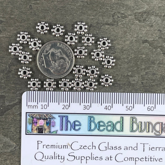 TierraCast 6mm Beaded Daisy Spacer, Antiqued Fine Silver Plated Beads (PF/385-77) * Qty. 20