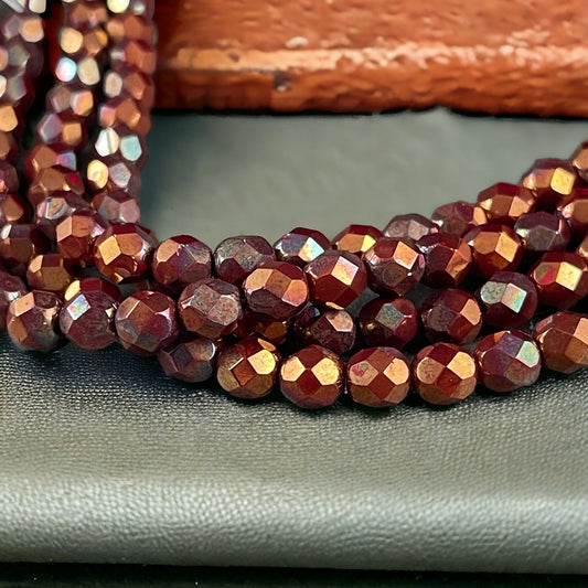 Czech Glass Beads - Bronze Chestnut Red, 6mm Fire Polished Faceted Beads, Bronze Luster Reddish Brown Glass Beads (FP6/SM-B9320) * Qty. 25