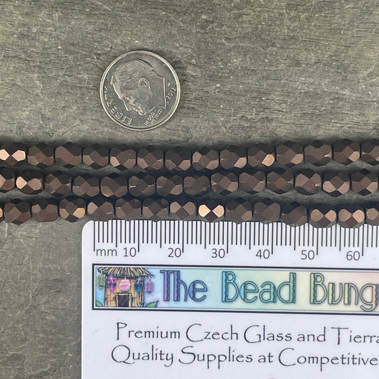 Czech Glass Beads, 6mm Opaque Brown Faceted Round Bead, Matte Bronze Metallic Beads (FP6/SM-M14415) * Qty 25