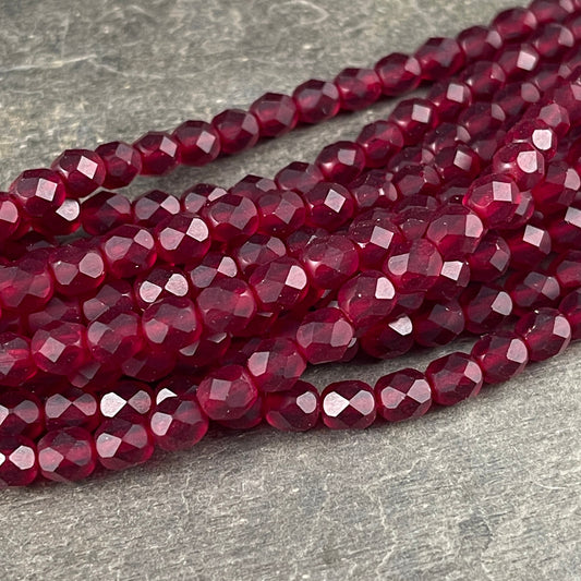 Matte Ruby Red Czech Glass Beads - 6mm Faceted Round Beads -Versatile Dark Red Glass Beads (FP6/SM-M9010) * Qty 25