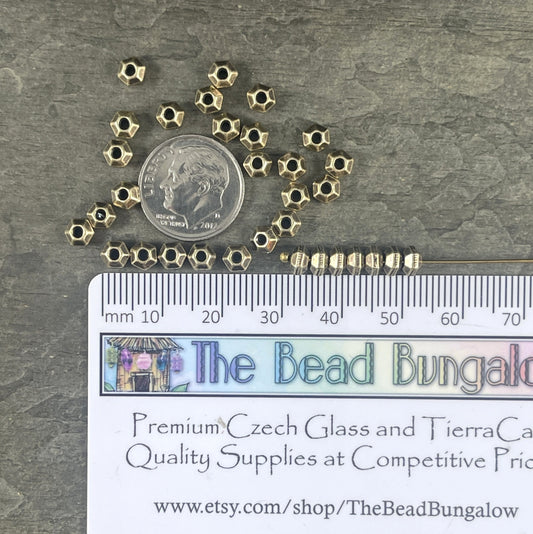 TierraCast 5mm Hexagon Bead, Faceted Antiqued Brass Beaded Hexagon Spacer (PF/393-57) * Qty. 20
