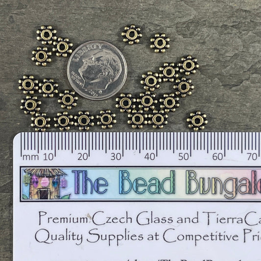 NEW TierraCast 6mm Beaded Daisy Spacer, Light Antiqued Brass Plated Beads (PF/385-57) * Qty. 20