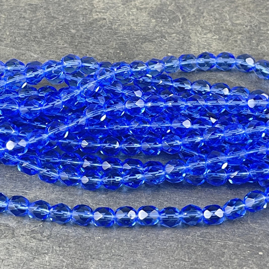Sapphire Czech Glass Beads 6mm Blue Glass Beads 6mm Faceted Round Beads - Transparent Sapphire Fire Polished Beads (FP6-3005) - Qty 25