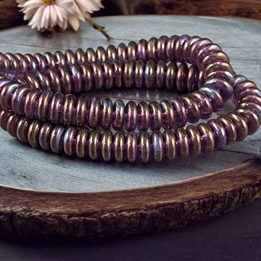 Czech Glass Beads - 6x2mm Heishi Rondelle, Purple with Mother of Pearl Finish, Iridescent Purple Beads (DSC/2093) * Qty. 50
