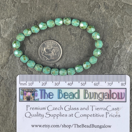 Czech Glass Beads - 6mm Tea Green, Light Turquoise Faceted Round Glass Beads (FP6/N-077) * Qty. 25
