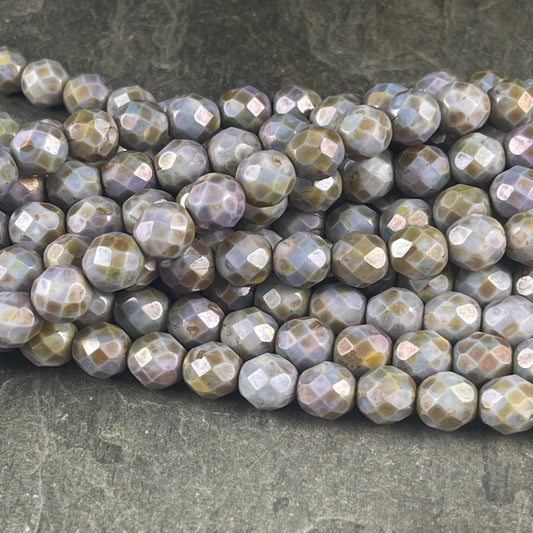 Slate Gray Green Blue 8mm Faceted Czech Glass Beads, Opaque Picasso Beads (FP8/SM-P65431 ) * Qty. 25