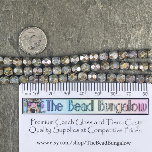 Czech Glass Beads - Slate Blue Green Luster, 6mm Faceted Round Picasso Beads (FP6/SM-P65431) * Qty. 25