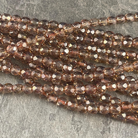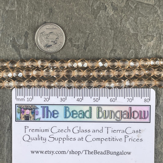 Czech Glass Beads - Golden 6mm Faceted Round Beads, Transparent Champagne Luster (FP6/SM-14413) * Qty. 25