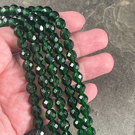 8mm Emerald Green Faceted Czech Glass Beads, Transparent Emerald Beads (FP8/SM-5014 ) * Qty. 25