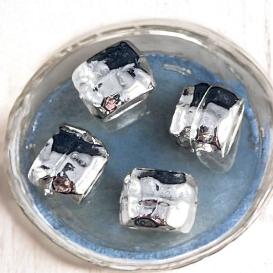 Czech Glass Beads - 6mm Clear and Silver Large Hole Melon Beads, Silver Round Beads (BH6/N-062) * Qty. 25
