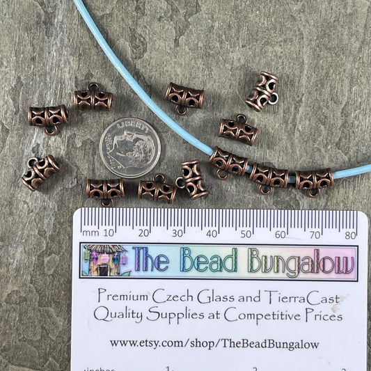 Copper Tube Bail with Loop, 11.5mmx5.5mm with 2mm hole Nickel Free Antiqued Copper Bail for Cord (RLF10546Y-NF) * Qty. 20