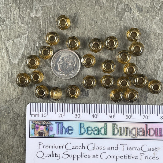 Czech Glass Beads - 8mm Gold Large Hole Melon Beads - Transparent Gold with Gold Wash and AB Finish (BH8/N-065) * Qty. 20