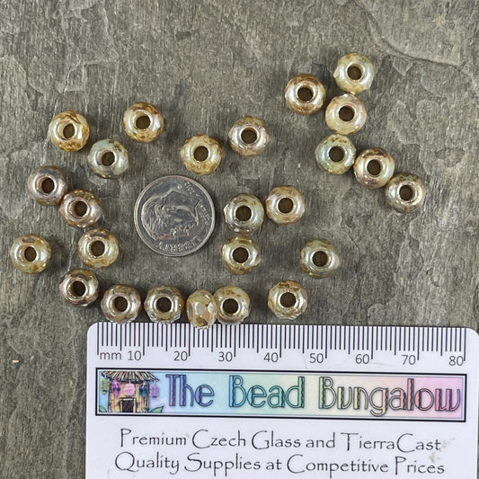 Czech Glass Beads - Large Hole Rondelles, 9x6mm Roller Beads with 3.5mm hole, Champagne Beige with AB (ROL/N-0761) * Qty. 12