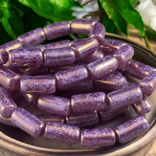 Czech Glass Beads - 14x7mm Large Hole Tube Bead, Purple Thistle with Plum Picasso Finish, 2mm Hole (TUBE/N-2126) * Qty. 10
