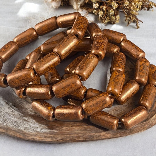 Czech Glass Beads - 14x7mm Large Hole Tube Bead, Burnt Orange with Bronze Picasso Finish, 2mm Hole (TUBE/N-2132) * Qty. 10