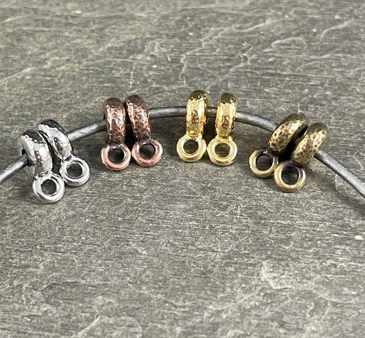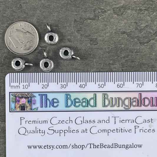 TierraCast Bail Bead, Pewter Hammered Spacer Bead with Loop, 8x3mm Spacer 2.75mm Hole, Antiqued Pewter (PF/892-04) * Qty. 4