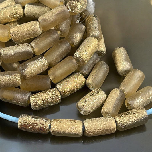 14x7mm Large Hole Czech Glass Tube Bead, Etched Gold Glass with AB and Gold Finishes, 2mm Hole (TUBE/N-1372) * Qty. 10