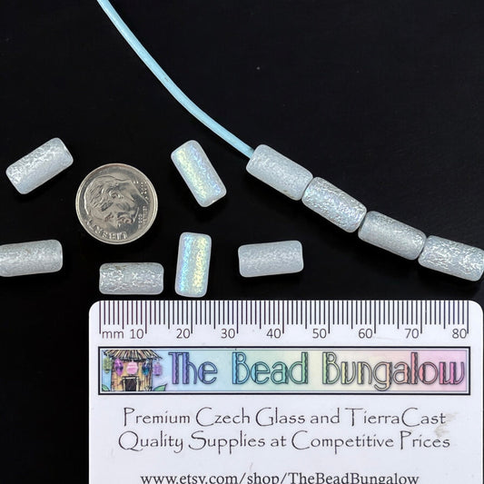 14x7mm Large Hole Czech Glass Tube Bead, Etched Transparent Glass with AB Finish, 2mm Hole (TUBE/N-0971) * Qty. 10