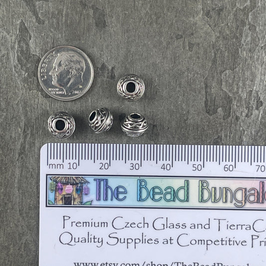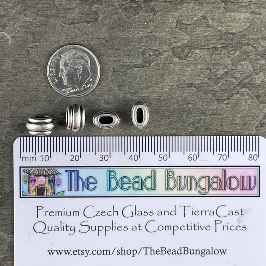 TierraCast Large Hole Beads, Antiqued Silver 4x2mm Deco Barrel Bead, Crimpable for Leather or Cord (PF/883-77) * Qty. 6
