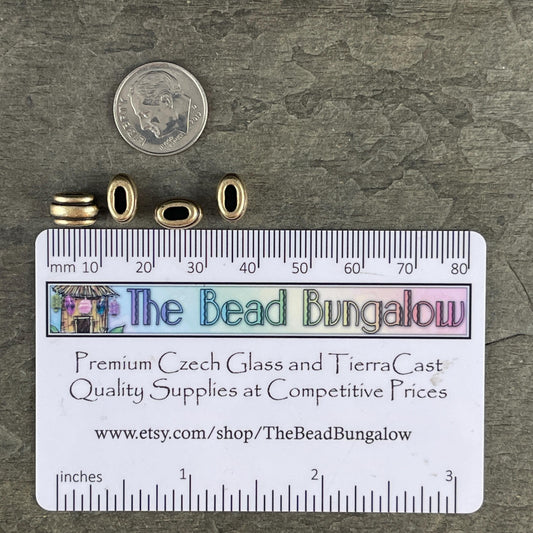 TierraCast Large Hole Beads, Antiqued Brass 4x2mm Deco Barrel Bead, Crimpable for Leather or Cord (PF/883-57) * Qty. 6
