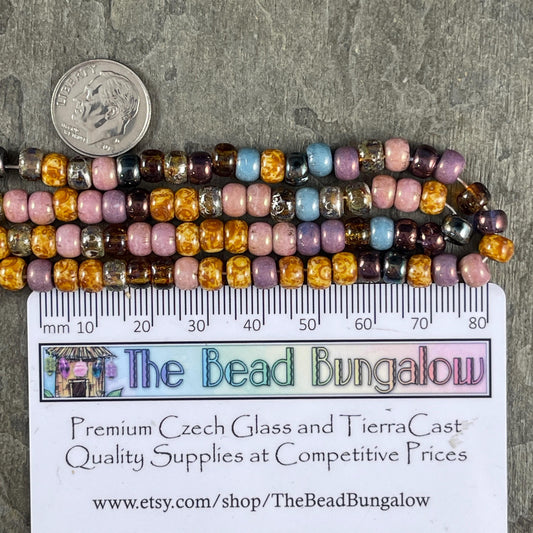 4/0 Lavender and Pink Seed Bead Mix, 5x4mm Purple and Pink Czech Glass Beads (4/0-ChBlossom) * 20" strand