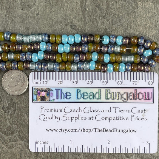 2/0 Blue Sky Luster, 6mm Unique Seed Bead Mix with Sky Blue, Light Sapphire, Purple, and Olive Green Beads (2/0-BlueSky) * 21" Strand