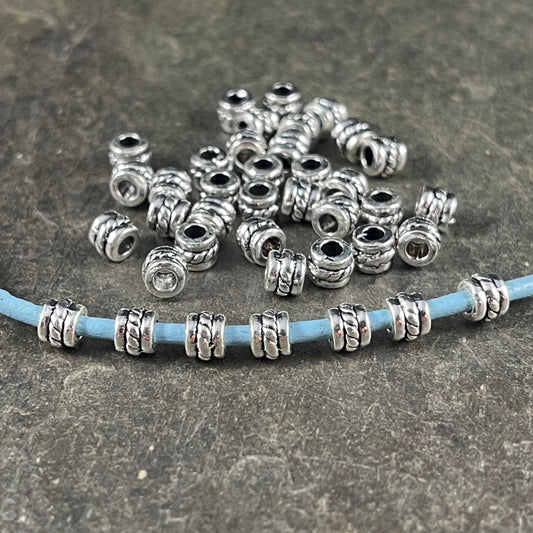 Antiqued Silver Tube Bead ~ 5x4mm Column Bead with 2.2mm Hole ~ Silver Metal Spacer Beads (0447Y-AS-NF) * Qty. 100