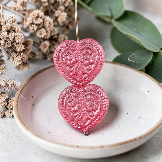 Czech Glass Beads - 18mm Heart Bead, Bubblegum Pink (FH-2) * 6 Beads