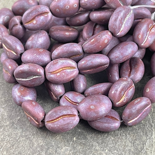 Matte Brown Coffee Bean Beads ~ Czech Glass Beads ~ 11x8mm Glass Coffee Beans ~ Brown Matte Finish Coffee Bean (MISC/RJ-4559) - Qty. 12