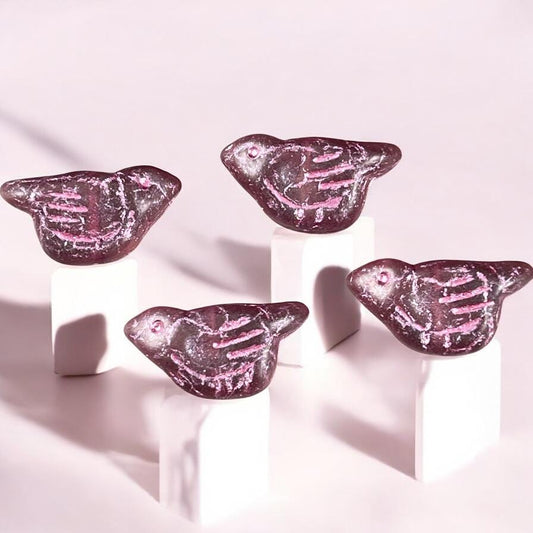 Czech Glass Beads - 11x22mm Chunky Bird Beads, Matte Rosewood with Pink Wash, Nature Theme, Bird Focal (N-1614) * Qty. 4