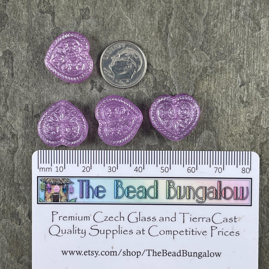 Czech Glass Beads - 18mm Heart Bead, Lilac with AB (FH-20) * 6 Beads