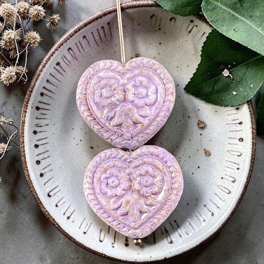 Czech Glass Beads - 18mm Heart Bead, Lavender with Bronze Wash (FH-15) * 4 Beads