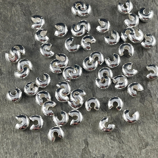 Silver Crimp Bead Cover, 5mm Iron Crimp Cover - Nickel Free Silver Plated Crimp Cover (H030-NFS) * Qty. 50 pieces