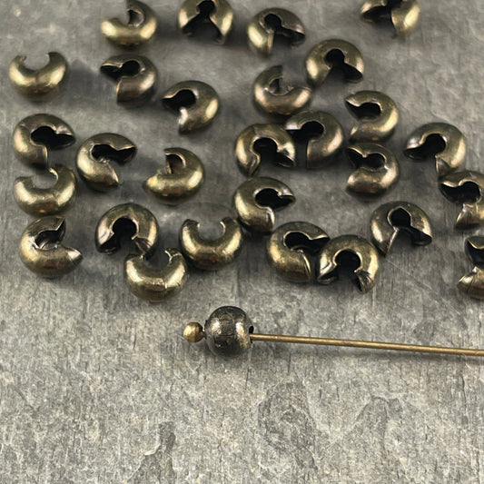 Bronze Crimp Bead Cover, 5mm Iron Crimp Cover - Nickel Free Antiqued Bronze Plated Crimp Cover (H030-NFAB) * Qty. 50 pieces