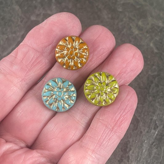 Czech Glass Coin Beads with Bird Design, Double Sided 12mm Beads ~ Bead Bungalow Exclusive Mix ~ Earring Pairs (COIN/MultiMix) * Qty. 8