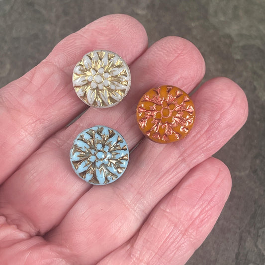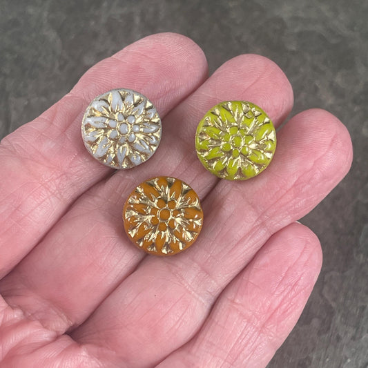 Czech Glass Beads - Tiny Blooms - 8.5mm Flower Coin Beads, Tiny Blooms Assortment of Colors * Qty. 20