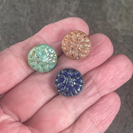 Czech Glass Bead Assortment - 14mm Dahlia Flower Beads - Pairs for Earrings, Flower Assortment (DM-3) * Qty. 6
