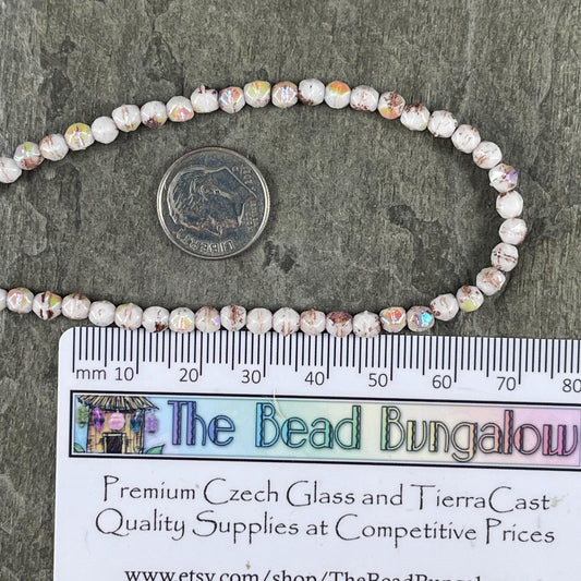 Czech Glass Beads - 4mm English Cut, White with Rainbow AB and Brown Wash (EC/N-0129) * Qty. 50
